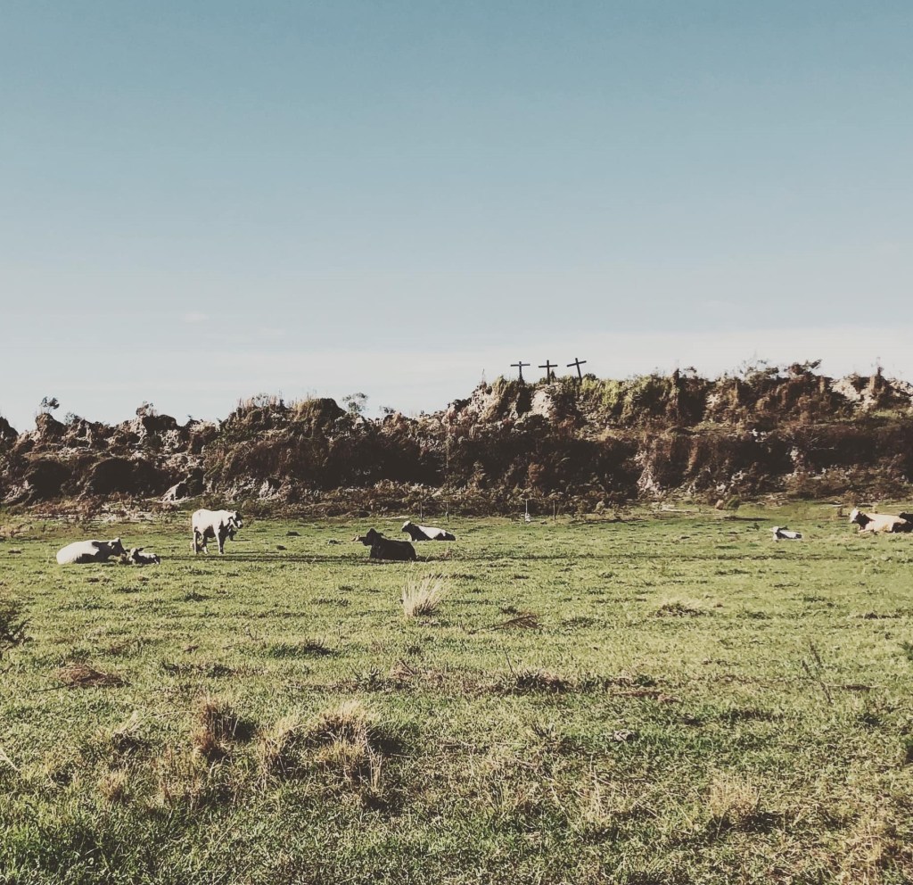 By the time I pulled back into the drive, the cow had been picked clean of its sinew, eyeballs, and organs. I couldn’t help myself – I took my eyes off the road to stare at its gaping cavity and the next thing I knew, the right side of my truck was angled down in the drainage ditch, the tires stuck in slime-green muck.