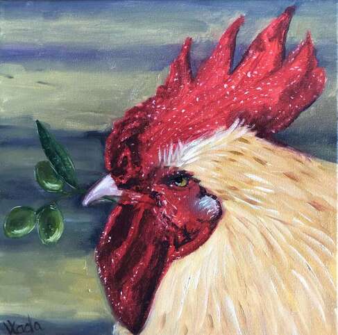 Thank you to Up the Staircase Quarterly for publishing “The tomatoes had gone” in their Winter Issue (#72) alongside the illustration “Rooster of Peace” by Ukrainian artist Josephine Florens (below. )
